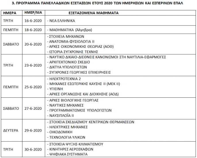 Το προγραμμα των πανελληνιων εξετασεων 2021.