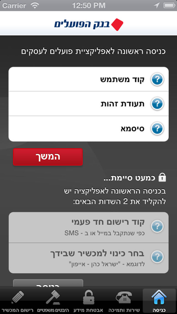 אנו משתמשים במוצרים ייחודיים כדי לשמור על טריות המוצר בקירור או בחימום לפי הנדרש עד ההגעה לבית הלקוח. הלוואות להון חוזר לצורך מימון האשראי השוטף הניתן על ידי בעלי עסקים ללקוחותיהם. לחצו ומלאו פרטים לבדיקת הקרנות היכולות לסייע לכם, לצורך ערוצי הסיוע לעסקים קטנים ובינוניים. החל מיום 30/09/2019, כל חברה שתגיש בקשה להלוואה במסגרת קרן פועלים תידרש להציג דוחות כספיים מבוקרים לשנת 2018. אפליקציית בנק הפועלים לעסקים מאפשרת לצפות במידע מהחשבון העסקי ולאשר עסקאות ממתינות לחתימה, בכל מקום ובכל זמן. יתכנו שינויים בשעות פעילות הסניפים. מוצע להתעדכן במנגנון איתור סניפים באתר. Removed from the app store. רפואי, שיניים, שאלות ותשובות וקבצים להורדה, השתתפות הבנק בשכל עובדים וילדי עובדים, מדריך לעובד, פועלים בקהילה, פעילות תרבות. אנחנו פועלים תמיד לשפר את השירות ולהרחיב את אזור החלוקה. המרכזים הטלפונים פועלים כרגיל אך יתכנו זמני המתנה ארוכים. הלוואות לעסקים ופתרונות מימון מהקרנות שונות. אפליקציית פועלים לעסקים מאפשרת לכם לבצע מגוון פעולות שיסייעו לכם לנהל את חשבונכם העסקי, מכל מקום ובכל זמן.